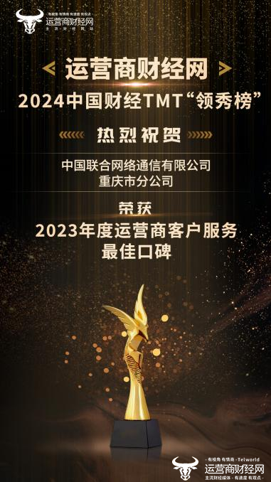 随着盛典的完美落幕,获奖结果也正式公开,祝贺中国联合网络通信有限公司重庆市分公司荣获“2023年度运营商客户服务最 佳口碑”。