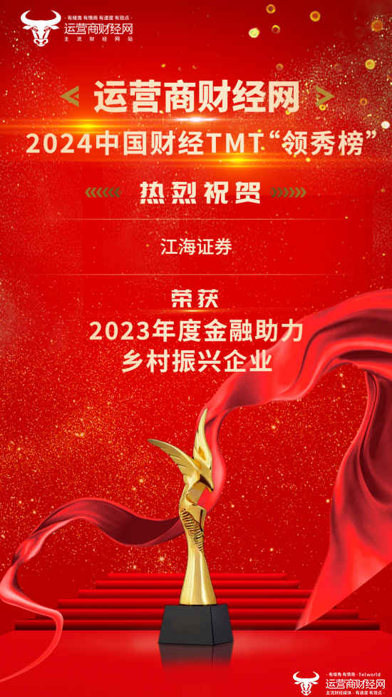 会议现场,2024中国财经TMT行业“领秀榜”公布:江海证券荣获“2023年度金融助力乡村振兴企业”。