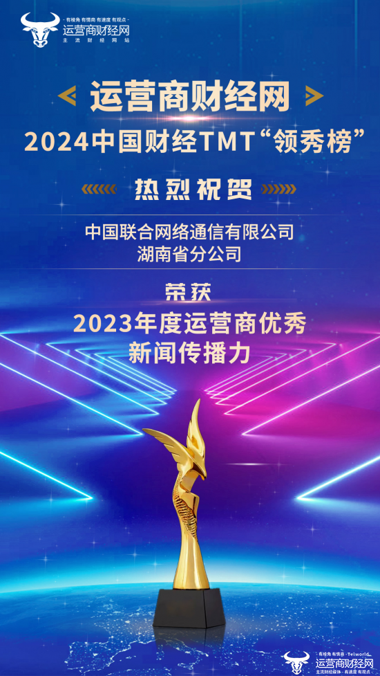 在众多优秀的企业及产品中,湖南联通荣获了“2023年度运营商优秀新闻传播力”奖项。