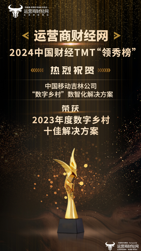 在本次盛典中,吉林移动的“数字乡村”数智化解决方案荣获“2023年度数字乡村十佳解决方案”奖项!