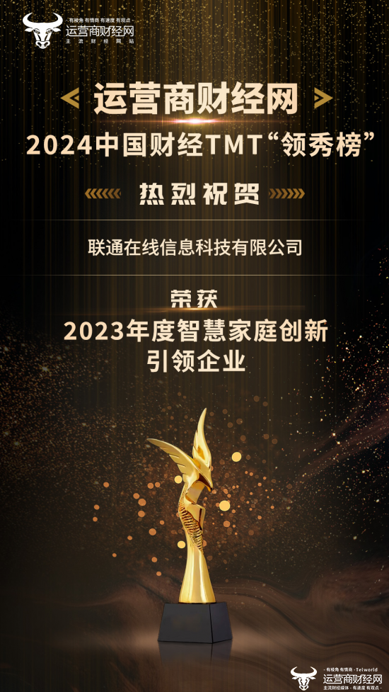 在1月21日由运营商财经网隆重召开的2024中国财经TMT“领秀榜”盛典上,联通在线信息科技有限公司在“群雄角逐”中脱颖而出,顺利将“2023年度智慧家庭创新引领企业”这一大奖归入囊中。