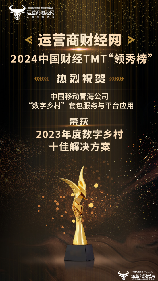 其中,中国移动青海公司的“‘数字乡村’套包服务与平台应用”项目拿下“2023年度数字乡村十佳解决方案”奖项。