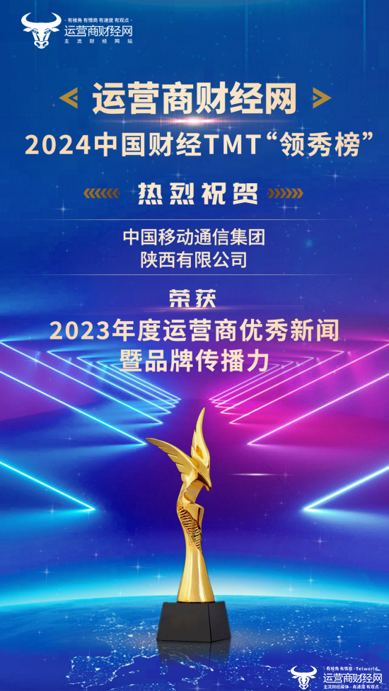 在盛典上,运营商财经网正式公布了年度评选的获奖名单。其中,热烈祝贺陕西移动荣获了“2023年度运营商优秀新闻暨品牌传播力”的殊荣。