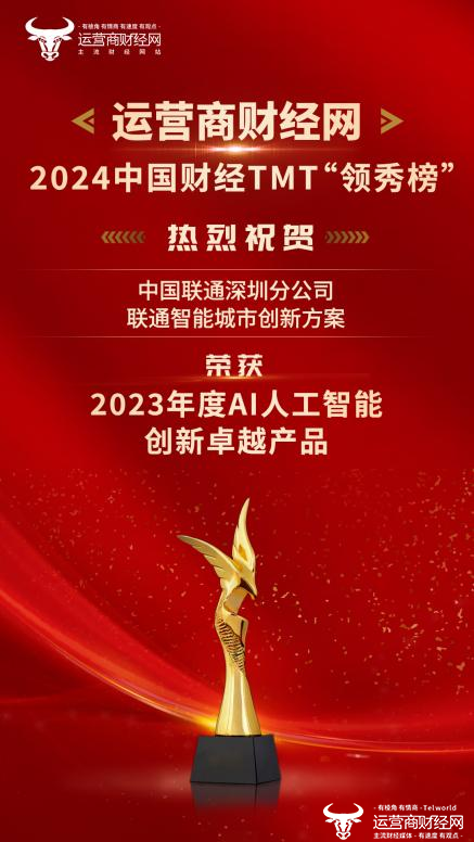在颁奖现场,中国联通深圳分公司的联通智能城市创新方案荣获2023年度AI人工智能创新卓越产品,祝贺他们!