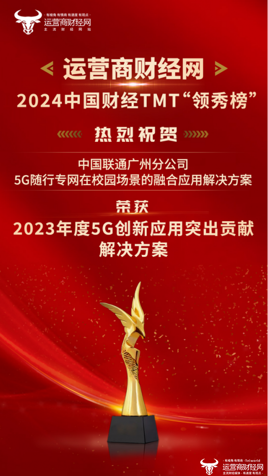 广州联通“5G随行专网在校园场景的融合应用解决方案”收获“2023年度5G创新应用突出贡献解决方案”荣誉。