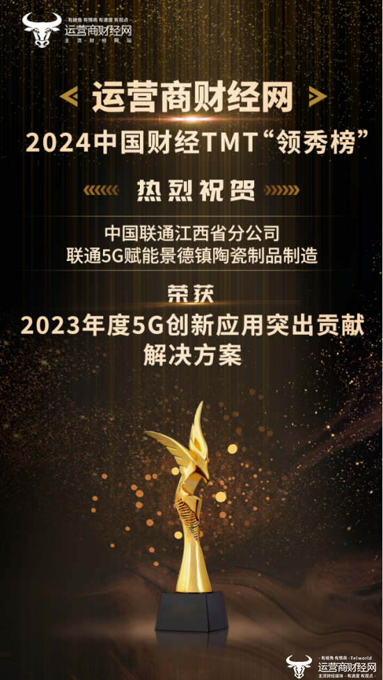 江西联通“联通5G赋能景德镇陶瓷制品制造”斩获“2023年度5G创新应用突出贡献解决方案”奖。