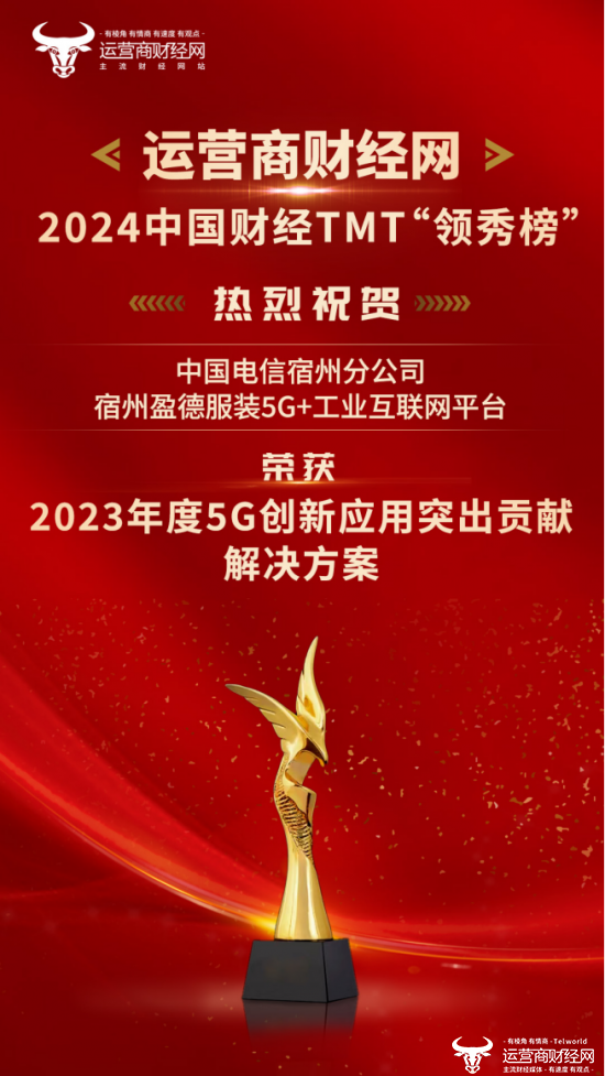 宿州电信“宿州盈德服装5G+工业互联网平台”取得“2023年度5G创新应用突出贡献解决方案”荣誉。