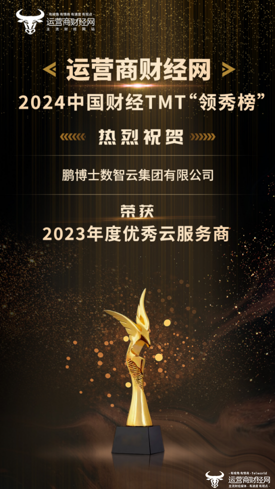 在本次2024中国财经TMT“领秀榜”盛典上,鹏博士凭借上述两项目荣获“2023年度优秀云服务商”大奖!