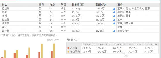 据公司2022年年报显示,吕科霖该年从公司获得的报酬为46.26万元,并不算多,甚至不如公司其他高管的一半。例如公司副总裁黄刚,他的薪酬为97.52万元,而副总裁徐毅的薪酬更是达到了142.63万元。
