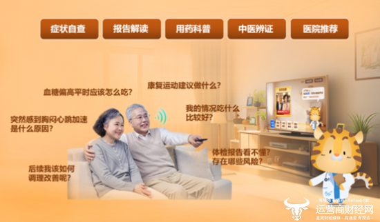 依托5G技术优势,云南移动在全国率先上线爱家健康服务平台,持续在宽带电视上发力大屏康养业务。爱家健康服务平台通过5G豹豹为家庭用户提供一站式健康医养服务,包括就医问诊、线上挂号、送药到家、健康管理、健康监测、健康内容等,为广大人民群众提供优质、便捷、温馨的居家康养服务模式。