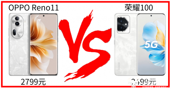首先是价格方面,12+256版本下,荣耀100的价格为2499元,而OPPO Reno11的价格为2799元,相比之下OPPO贵了300元。
