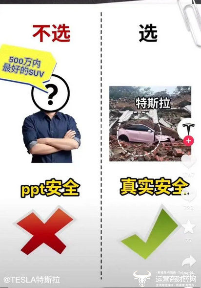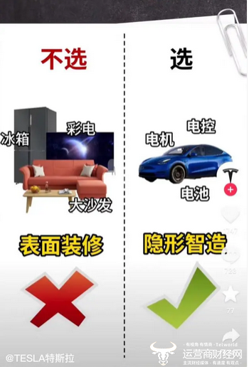 12月29日,特斯拉官方账号发布一则名为《买电动车看什么,请大声说出你的答案!》的短视频。在视频中,特斯拉称:买电动车不选冰箱、彩电大沙发的表面装修,要选电机、电控、电池的隐形智造;不选ppt安全,要选真实安全。