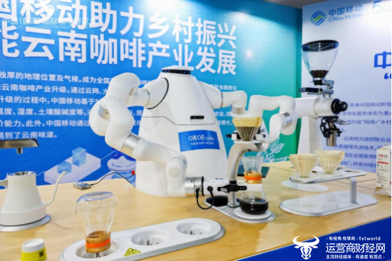 在“中国咖啡第一村”保山市隆阳区潞江镇新寨村,中国移动云南公司完成1.36万亩咖啡园的5G网络全覆盖,为线上线下电商互动、园区直播等提供高速稳定网络,带动咖啡线上交易额破千万。打造智慧咖啡园区,落地温湿度和生长监控、水肥自动化灌溉、病虫害识别防治等应用,提升咖啡品质,助力生豆每公斤价格从15元提至60元。成功研制“咪咕种子#M号 保山小粒咖啡拼配配方”,斩获2022年ICT国际咖啡品鉴大赛金奖,提升知名度。基于物联感知打造“AI咖大师”,独立完成取豆、磨豆、焖蒸等一系列手冲咖啡操作,成功亮相中国(普洱)国际咖啡博览会。