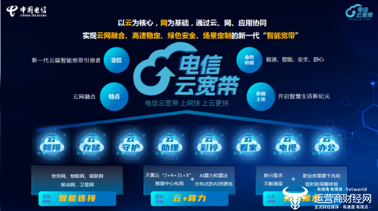 电信云宽带,乍听起来极具科技感,其以云为核心,网为基础,是通过云、网、应用协同实现云网融合、高速稳定、绿色安全、场景定制的新一代“智能宽带”。