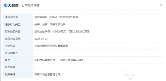 同日,该公司还因“拼装、加装、改装非机动车”被罚没6.4万多。