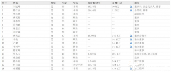 在公司总会计师职位上干了21年,何自强的薪酬十分丰厚。在公司高管中,董事长刘述峰薪酬是1054万,总经理陈仁喜薪酬是1129万,其次就是何自强,薪酬是430.9万,同时他还持有公司254.7万的股份,比总经理陈仁喜还高,陈仁喜持股数为214.6万。