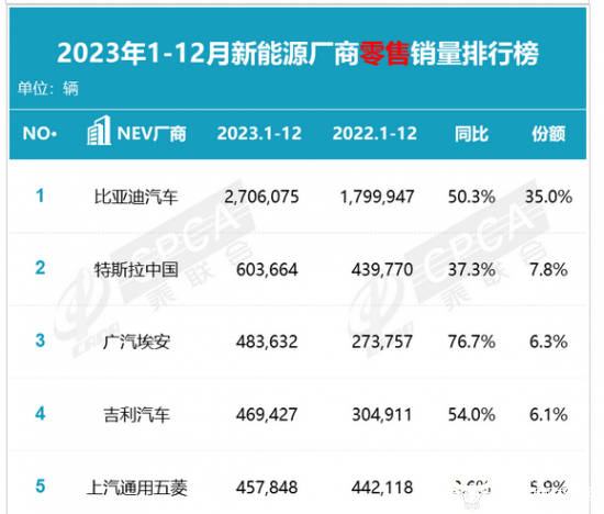 但奇怪的是,在广汽集团产销快报中,广汽埃安全年累计销量又低于乘联会披露的全年零售销量。快报显示,2023年1月-12月广汽埃安的累计销量为480003辆,但乘联会2023年1月-12月新能源厂商零售销量排行榜显示广汽埃安销量为483632辆,排在第三位。