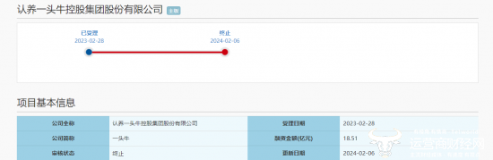 2月6日,上交所发布公告显示,因认养一头牛保荐人撤销保荐,根据有关规定,上交所终止其发行上市审核。
