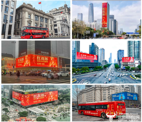 地标建筑、商业枢纽同样被红花郎牢牢占据。巨幅广告点亮中国第一高塔广州塔,红色巨型酒瓶装点贵阳机场路,过年期间,红花郎持续占领价值高地,鲜红的颜色和喜庆的祝福,吸引出街出行的行人和旅客纷纷驻足。