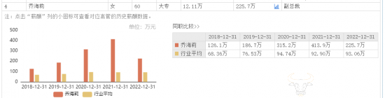 在公司任职这么多年,乔海莉的年薪还是很不错的,据最新年报显示,她2022年从公司获得的报酬为225.7万元,但这是降薪后的水平,在2021年的时候,她薪酬高达413.9万元。不知在刚过去的2023年里,她的薪酬会是多少,是否还会涨回来。