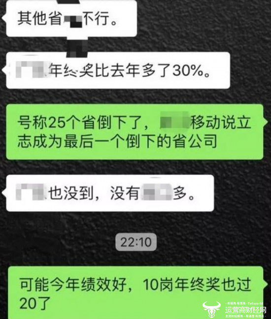 近日,有传言称,某东部沿海省份移动公司一名10岗员工年终奖20万。