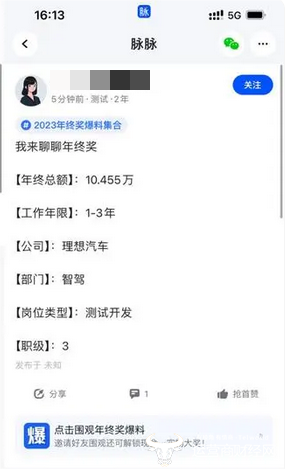 日前,有带有理想汽车员工认证的网友在某职场社交平台爆料自己拿到的年终奖超过10万元,该消息引起不少关注,消息是真的吗?