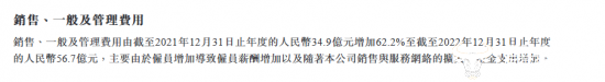 虽然在2023年初,网上有人说理想汽车“光在企业管理上学习华为的狼性文化,而在员工奖励上却没有看到半点华为的分红机制”,这种话也不知是否有道理。但是运营商财经网注意到,在2021年,理想汽车销售、一般及管理费用达34.9亿元,一度高于研发费用(32.9亿元)。