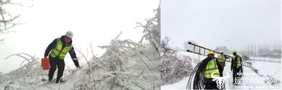 (湖北移动抢修人员顶着寒风进行抢修,全力保障网络平稳运行)