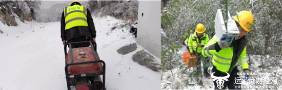 (网络保障人员艰难行走在雪地中进行通信设施巡检、抢修人员不惧风雪徒步开展抢修工作)