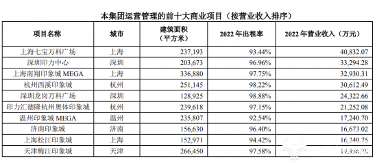 万科2022年财报显示,在集团运营管理的商业项目中,上海七宝万科广场营业收入居于首位,营收为4.08亿元,出租率为93.44%。