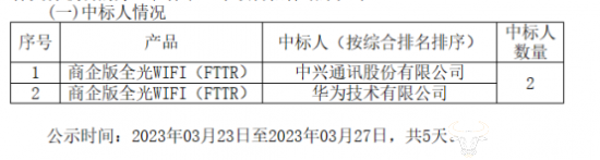 近日,某运营商省公司公布了2023-2024年商企版全光WiFi(FTTR)终端应急框架采购(变更)中标结果,具体情况如何?没想到华为和中兴连这个小项目也要涉足。