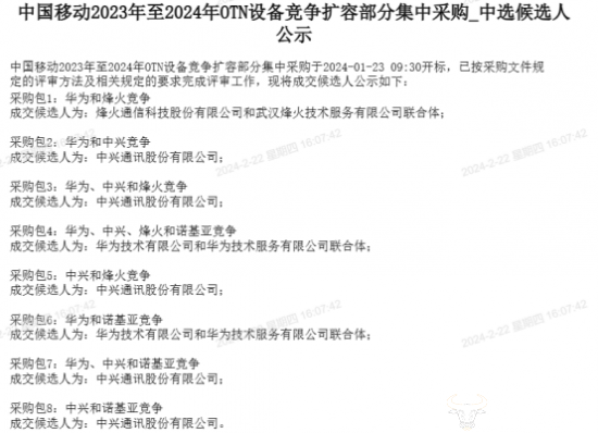 近日,中国移动2023-2024年OTN设备竞争扩容部分集中采购中选候选人公示,中兴通讯胜过华为成最大赢家,具体是什么情况?