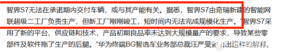 据了解,智界S7使用的是华为的芯片。有消息称华为零部件供应不足。该消息不算是空穴来风。此前阿维塔12车主也遇到延期交付的问题。据阿维塔方面表示:我们是缺失零部件导致延期交付的,只能确认是华为的零部件。而华为相关领导人曾在直播间承认零部件供应问题。