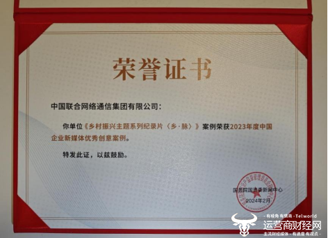 《乡·脉》系列纪录片一经上线,就广受关注,不仅在广东卫视、北京卫视、全国IPTV频道等上线播出,同时在国资小新视频专栏、中国联通各级视频平台等线上渠道同步展示,以该纪录片为素材制作的视频彩铃,累计播放次数超过三亿次。近日,这部宝藏纪录片,更是凭借精良的制作、独特的视角、震撼的观感,荣获国务院国资委新闻中心颁发的“2023年度中国企业新媒体优秀创意案例”。