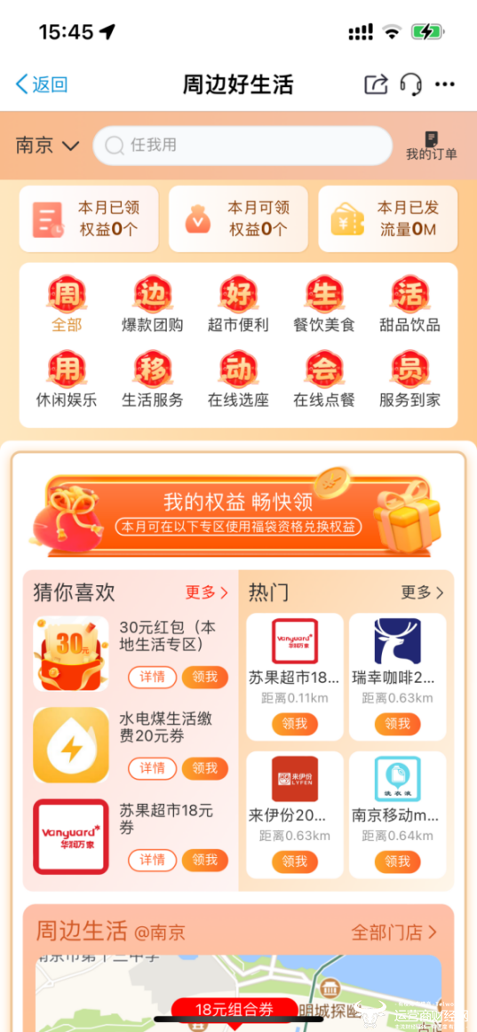 用户只要进入“中国移动江苏”掌厅APP生活频道点击“周边好生活”,或是进入江苏移动官方微信对话框输入“周边好生活”,就能发现附近1.5公里左右的多个门店优惠活动。截止2024年2月底,江苏移动“周边好生活”已发展用户超过一百万,与495个知名商家开展合作,覆盖全省1.95万个门店,涵盖商超便利、餐饮美食、生鲜水果、甜品饮品、休闲娱乐、生活服务六大门类。
