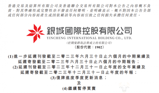 近日,银城国际控股发布公告称,延迟发布2023年度半年报及年报。目前,公司股票仍在停牌中,总裁马保华能不着急吗?