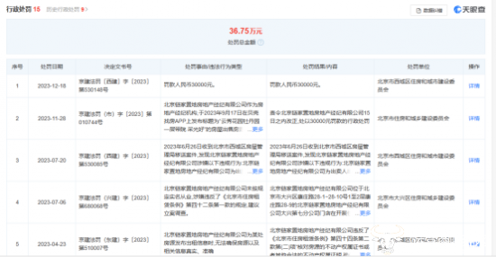 运营商财经网在天眼查了解到,过去一年,北京链家置地房地产经纪有限公司收到的罚单数量不少,违规原因包括“发布出租信息时,无法确保房源以及相关信息真实、准确”、“交易房屋未取得相关登记手续”、“公司未按规定实名从业”等