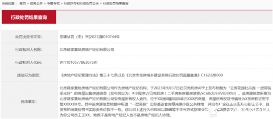 上述行为构成以隐瞒等不正当方式招揽业务,诱骗消费者交易。2023年11月18日,根据相关规定,北京市住房和城乡建设委员会责令北京链家置地房地产经纪有限公司15日之内改正,并给予3万元罚款的行政处罚。