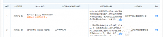 因此,杭州市生态环境局临安分局于2020年12月16日对其处以了罚款3.9万元的行政处罚。