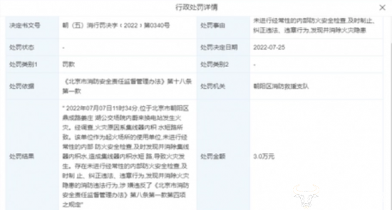 为此,北京蔚来能源科技有限公司因违反北京市消防安全责任监督管理办法,被北京朝阳区消防救援支队罚款3万元。