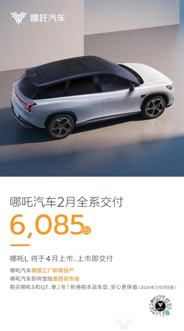 公开数据显示,2023年哪吒汽车海外市场销量超2万辆,同比暴增567%,在造车新势力中排名第一。今年1月-2月,公司海外出口量达4516辆,仍然是新势力车企出口量第一名。