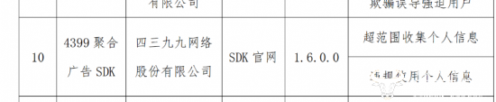 近两年,四三九九的麻烦也不少,就在去年11月17日时,四三九九的“4399聚合广告SDK”还被工信部点名,存在超范围收集个人信息、违规使用个人信息的行为。