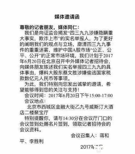 值得一提的是,四三九九至今仍未上市成功。但它在2014年时便开始了IPO之路,此后更是多次递交招股书。在排队IPO的过程中,四三九九遇到的麻烦不少,其中引人关注的莫过于2017年6月被公司的相关方鼎麟基金的有限合伙人蒋和平和李胜利实名举报欺诈上市、信披违规这件事了。