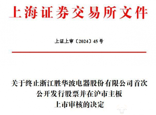 更早之前,1月31日,上交所发布文件称,决定终止浙江胜华波电器股份有限公司首次公开发行股票并在沪市主板上市审核,保荐机构也是国投证券。