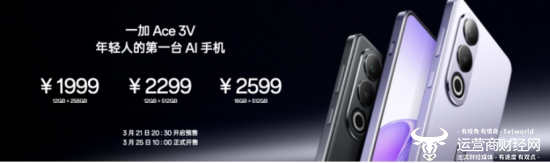 一加 Ace 3V 12GB + 256GB 版本,售价 1999 元;