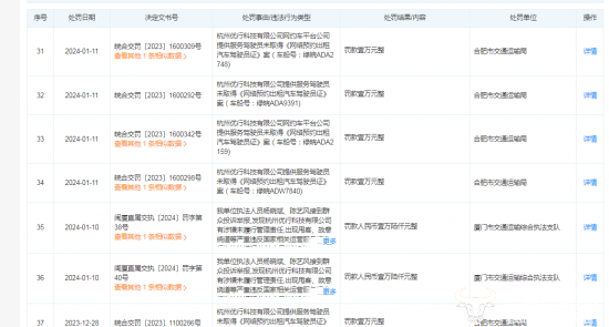 天眼查显示,曹操出行的关联公司杭州优行科技有限公司今年以来已经被罚了36次,最早被处罚的日期是1月10日,最近被处罚的日期为3月1日,期间相隔还不到两个月,全部被罚款项合计39.2万元,罚金可观、罚单惊人!