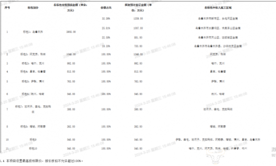 项目划分为10个标包,允许兼投兼中,前8个标包为常规标包,最多可中选2个份额;标包9、10为应急标包,最多可中选1个份额。也就是说,在10个标包中,一个供应商最多可中选3个份额。据统计,该项目总计含税预算为9810万元,项目不接受联合体投标。