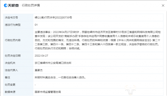值得一提的是,恺英网络全资子公司浙江盛和网络科技有限公司,曾在2022年4月27日,因开发的“高能手办团”手游存在未经用户同意收集使用个人信息和未明示收集使用个人信息的目的、方式和范围的情况,被浙江省嵊州市公安局浦口派出所当场训诫。