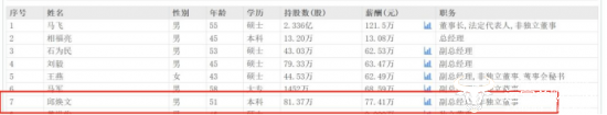 在东方财富网上披露的薪酬显示,公司内薪酬最高的是董事长马飞,年薪有121.5万。其次就是邱焕文,薪酬77.41万,另一位副总马军年薪为68.59万,他是马飞的哥哥。