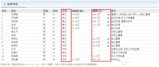 不仅是徐凤英,在公司公布薪酬的高管中,也只有董事长张德强的328.3万的薪酬在她之上。